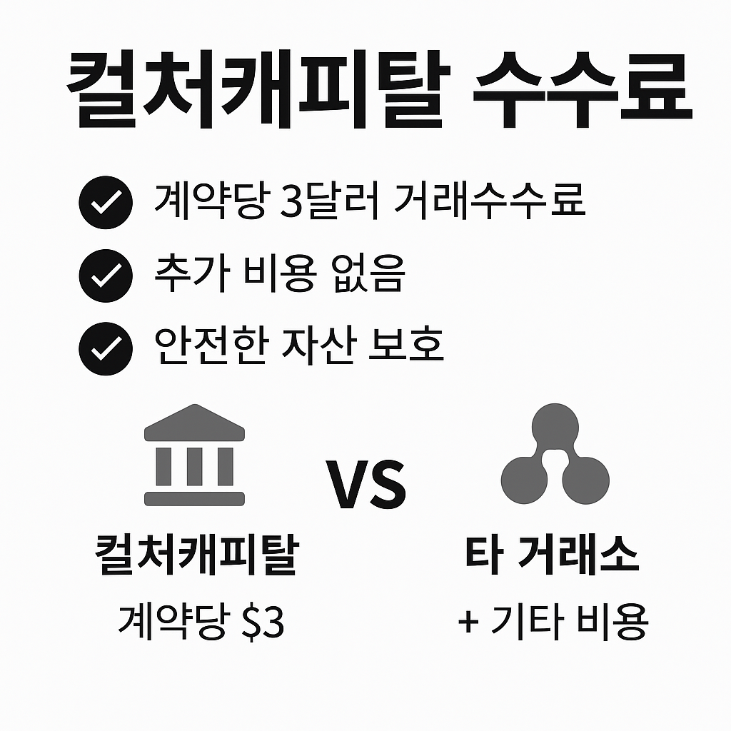 게시 시점 이후 수수료 정책은 변동될 수 있으니, 거래 전 컬쳐캐피탈 공식 공지/고지 페이지에서 최신 정보를 확인하세요.