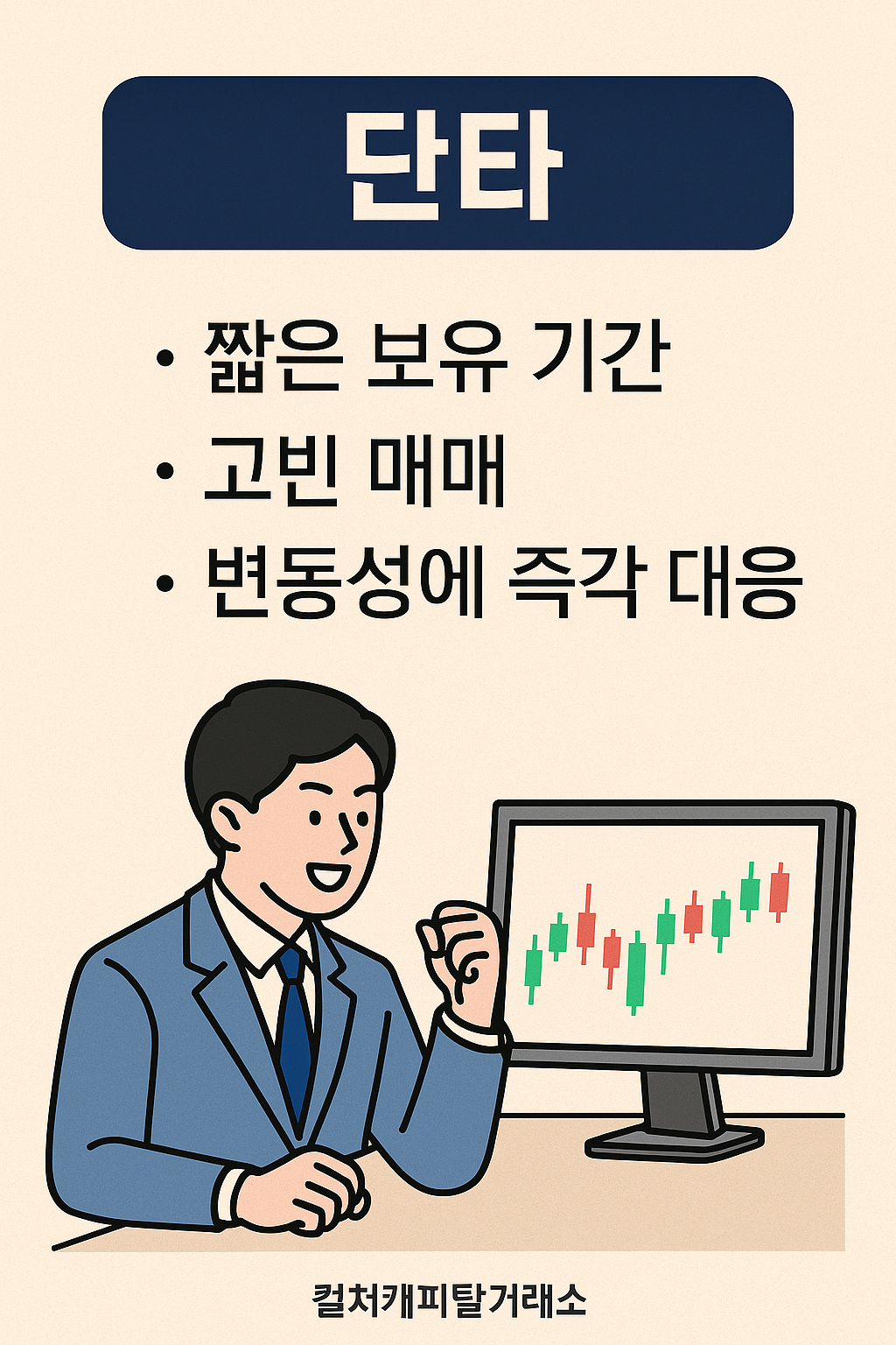 - 단타 → 시장에 오래 집중할 수 있고, 신속 대응 가능한 트레이더