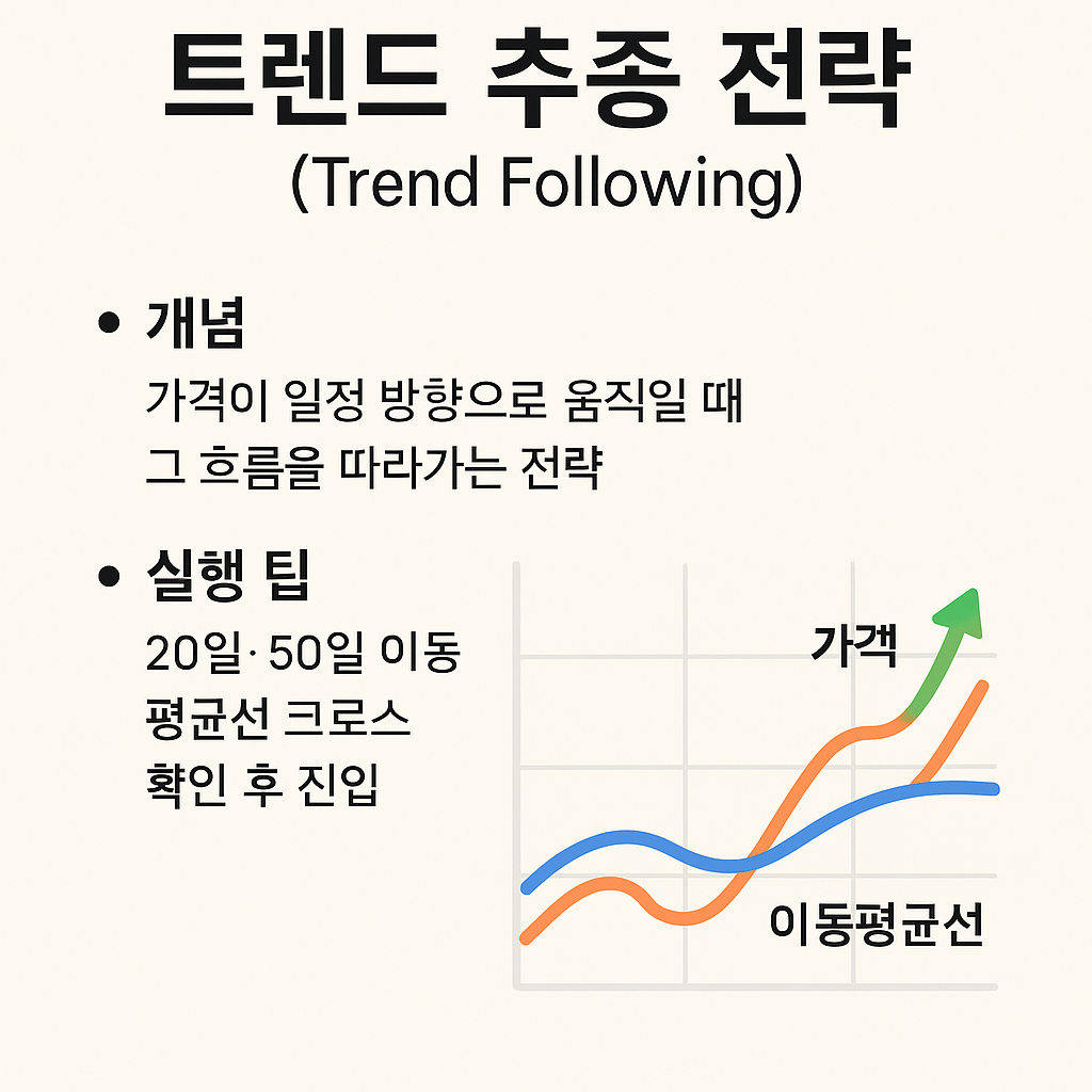 - 개념 : 가격이 일정 방향으로 움직일 때 그 흐름을 따라가는 전략