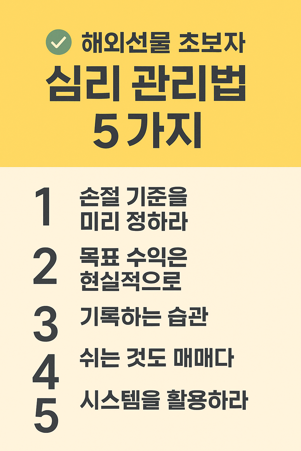 📌 해외선물 초보자 심리 관리법 I 손실 줄이고 안정적인 매매를 위한 5가지 원칙 본문
