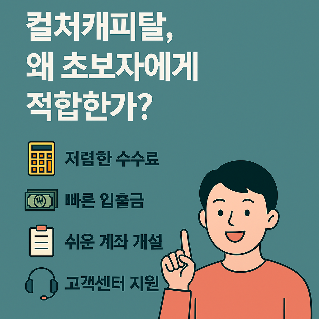 ✅ 해외선물 초보자에게 가장 적합한 거래소는? 컬쳐캐피탈은 저렴한 수수료, 빠른 입출금, 쉬운 계좌 개설, 친절한 고객센터로 입문자에게 안정적인 시작 환경을 제공합니다.