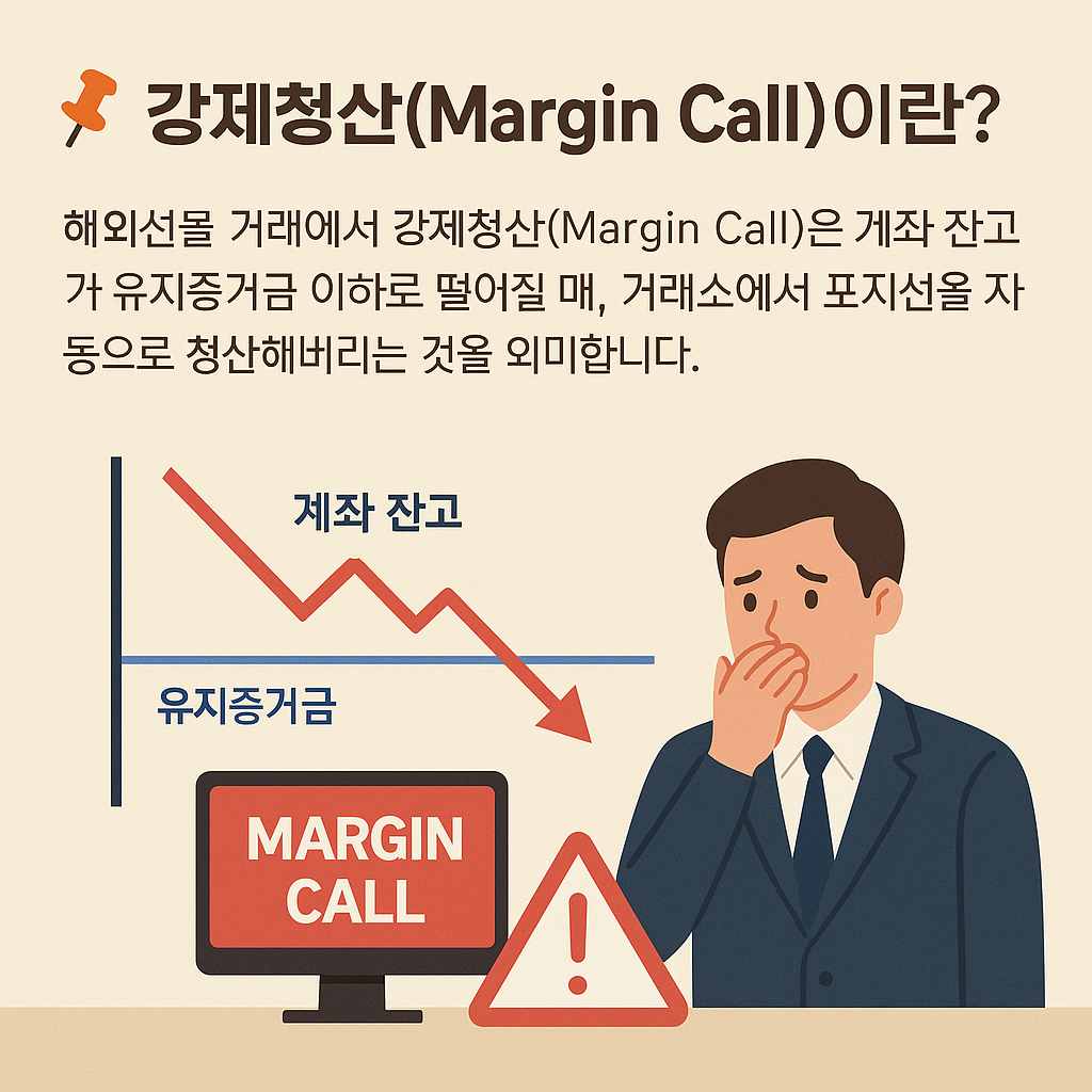 해외선물 거래에서 **강제청산(Margin Call)**은 계좌 잔고가 유지증거금 이하로 떨어질 때, 거래소에서 포지션을 자동으로 청산해버리는 것을 의미합니다.