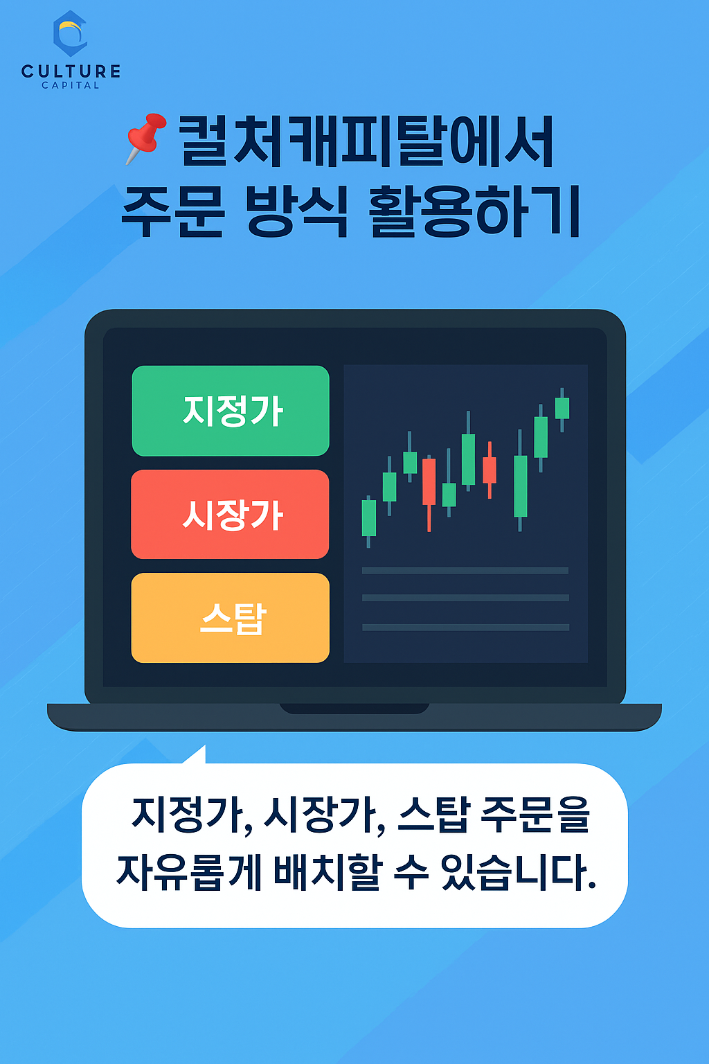 👉 컬쳐캐피탈과 함께라면 초보자도 안정적으로 주문 방식을 익히고 실전에 적용할 수 있습니다.