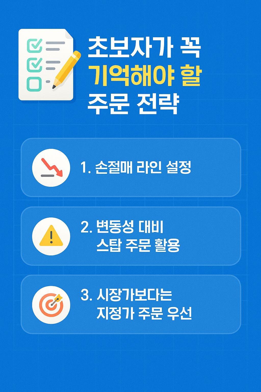 📌 초보자가 꼭 기억해야 할 주문 전략