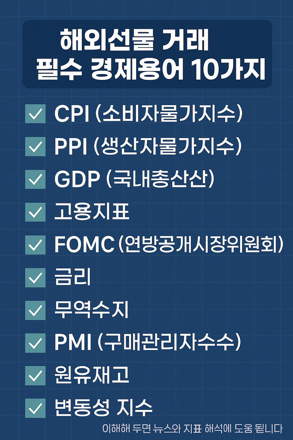오늘은 해외선물 투자자라면 반드시 알아야 할 경제용어 10가지를 정리했습니다.