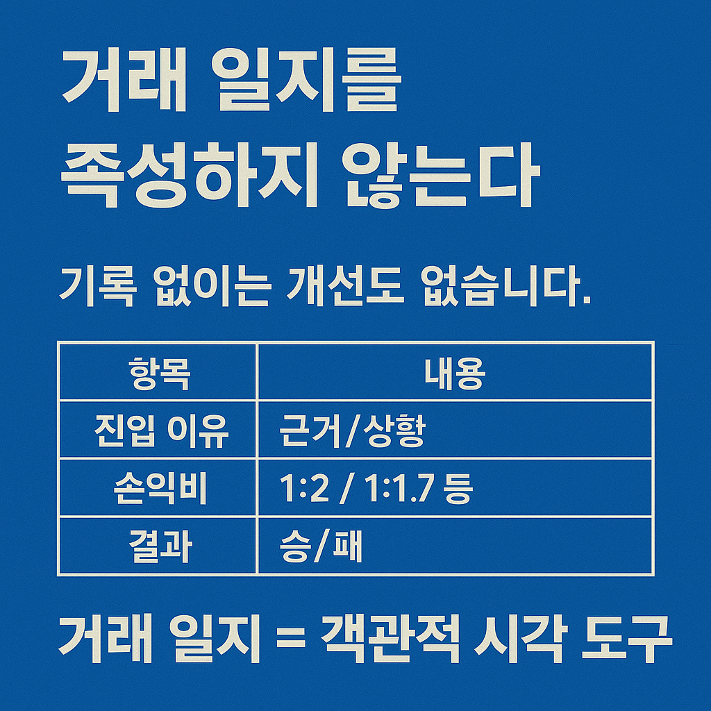 거래 일지는 자기 매매를 객관적으로 보는 눈을 만들어줍니다.
