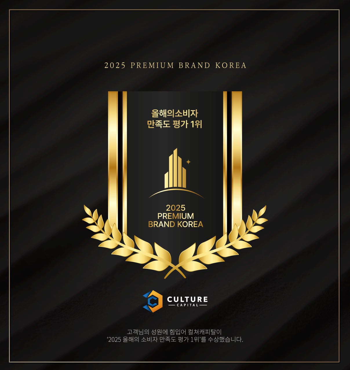 컬쳐캐피탈은 앞으로도 약속드립니다. 눈앞의 수수료나 이익보다, **'회원님들의 '성공적인 자림'**을 최우선 가치로 두겠습니다. 가장 권위 있는 시상식에서 인정받은 그 브랜드 파워 그대로, 여러분의 든든한 투자 파트너가 되겠습니다.