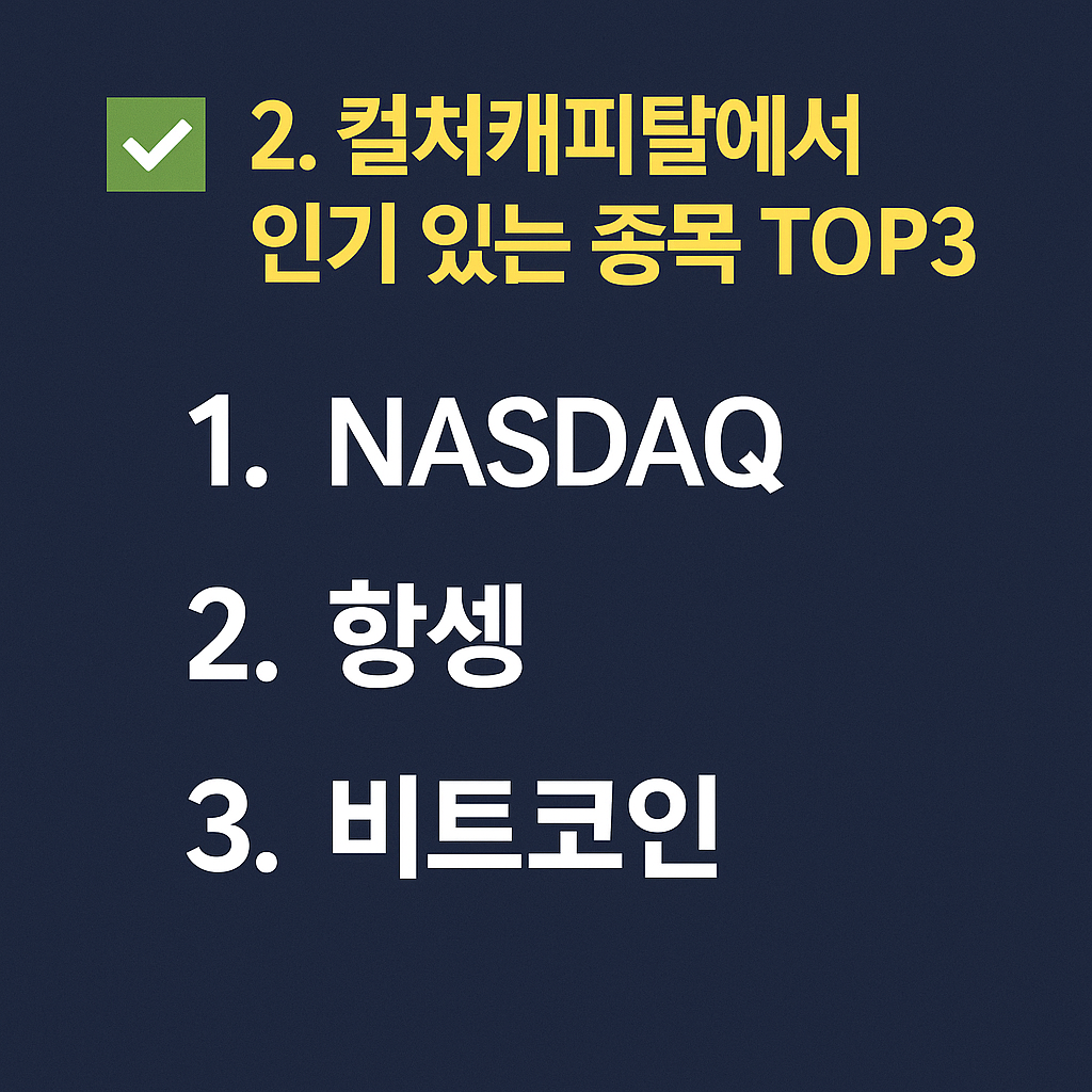 ✅ 2. 컬쳐캐피탈에서 인기 있는 종목 TOP3