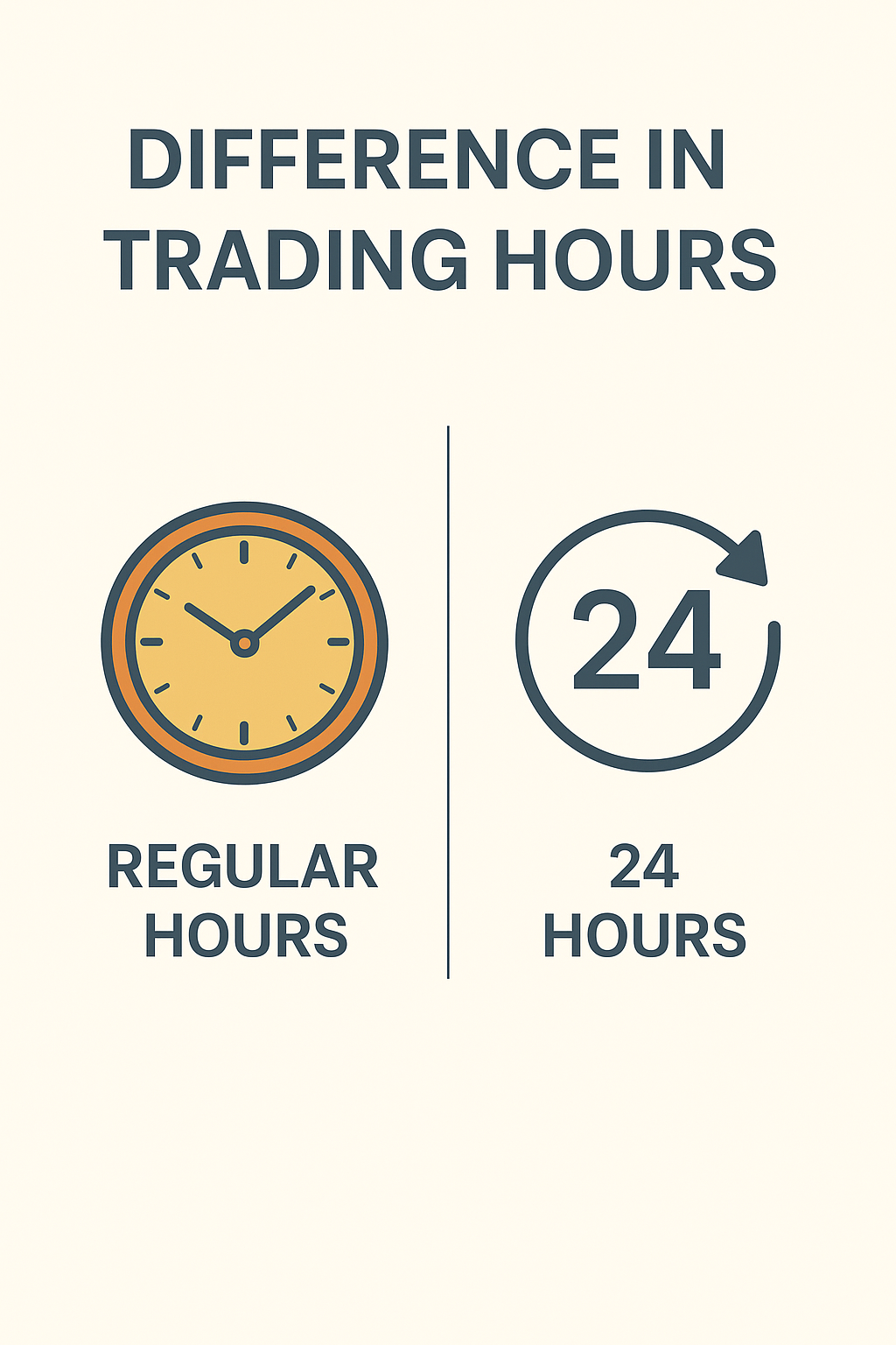 거래 시간, 규제, 안정성 등에서 큰 차이가 존재합니다.
